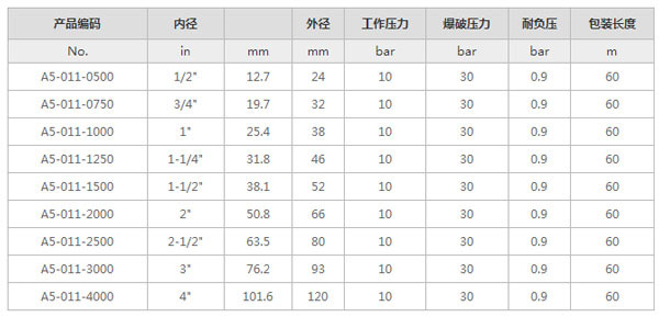 内层:食品级EPDM合成橡胶,白色,光滑