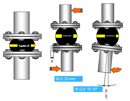 橡胶膨胀节也叫补偿器,由橡胶体和法兰、支架等附件组成。其原理是利用橡胶体的有效伸缩变形,来吸收管道因热胀冷缩或者机械振动等原因而产生的尺寸变化,比如管道的轴向位移、横向位移或角位移等,也可用于降噪减振。