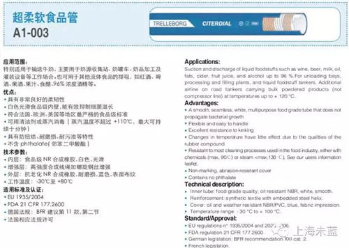 这是一款超柔软的食品软管,针对收奶,罐车等方面应用性价比很好,技术参数,如下。