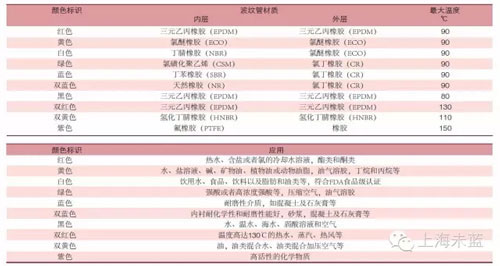 橡胶体。首先要根据输送介质的浓度和温度等选择一款适合的橡胶材质。橡胶体材质有三元乙丙(EPDM),氯醚橡胶(ECO),丁腈橡胶(NBR),氯磺化聚乙烯(CSM),丁苯橡胶(SBR),天然橡胶(NR),氯化丁腈橡胶(HNBR)、氟橡胶(Viton)等。不同材质会通过不同的颜色来标识,以便于使用过程中更好区分。