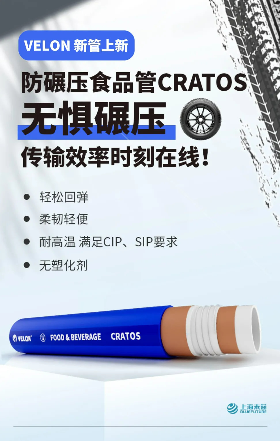 防车碾压食品管CRATOS由多层合成织物螺旋缠绕,并带有单股非金属螺旋丝增强。该种特殊的构造使得软管在发生意外挤压后可较快恢复原状。